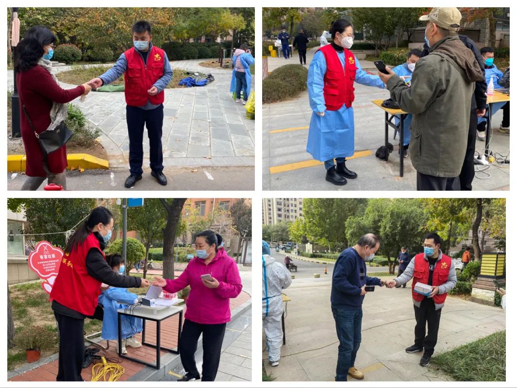 志愿服務(wù)暖人心。志愿者們準(zhǔn)時(shí)到達(dá)社區(qū)核酸采集點(diǎn),在各個(gè)檢測(cè)點(diǎn)幫助維持秩序,引導(dǎo)群眾保持安全距離,有序檢測(cè),幫助老年群眾注冊(cè)核酸檢測(cè)信息碼,發(fā)放核酸檢測(cè)貼紙,宣傳疫情防控法律法規(guī),針對(duì)群眾提出的各項(xiàng)疑問(wèn)進(jìn)行耐心解答。志愿者們?cè)诓煌膷徫簧下穆毐M責(zé),配合社區(qū)工作人員、醫(yī)務(wù)工作者明確分工、協(xié)調(diào)配合,大大提高了檢測(cè)效率,確保了社區(qū)按時(shí)完成全員核酸檢測(cè)工作。